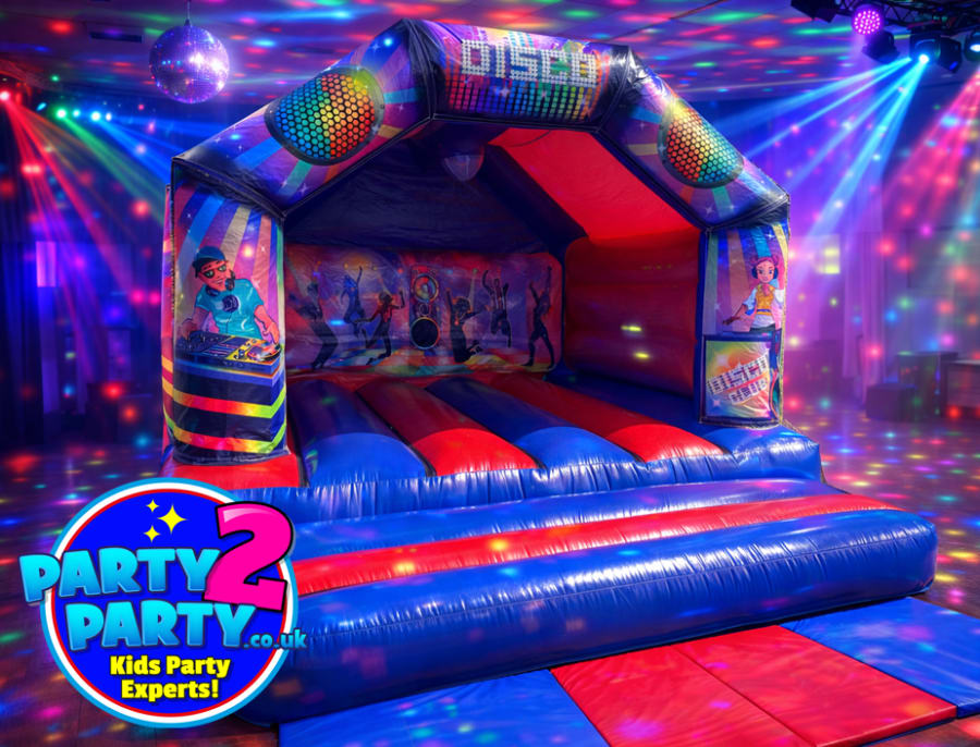 Our two (2) hour fully hosted children's disco party package includes a full mobile disco setup, disco lighting, DJ entertainer host, party games and optional smoke machine (if room does not have smoke alarm fitted) plus a disco themed bouncy castle.