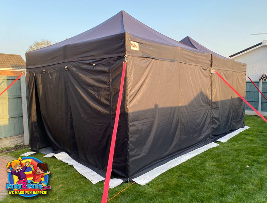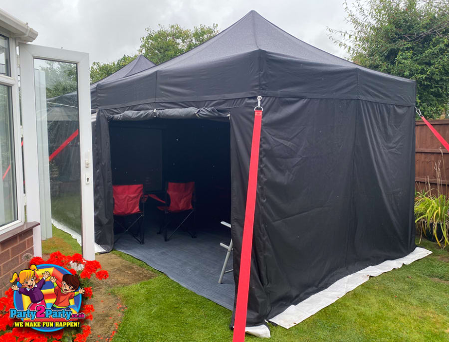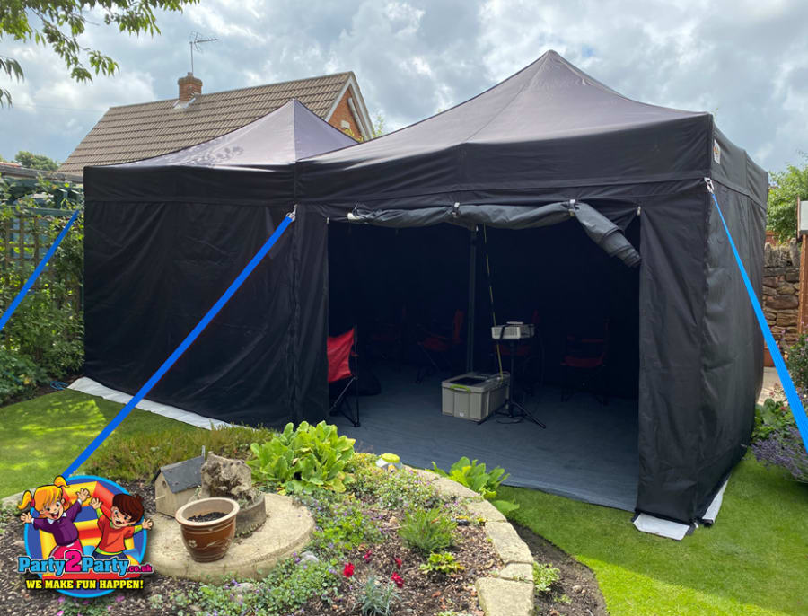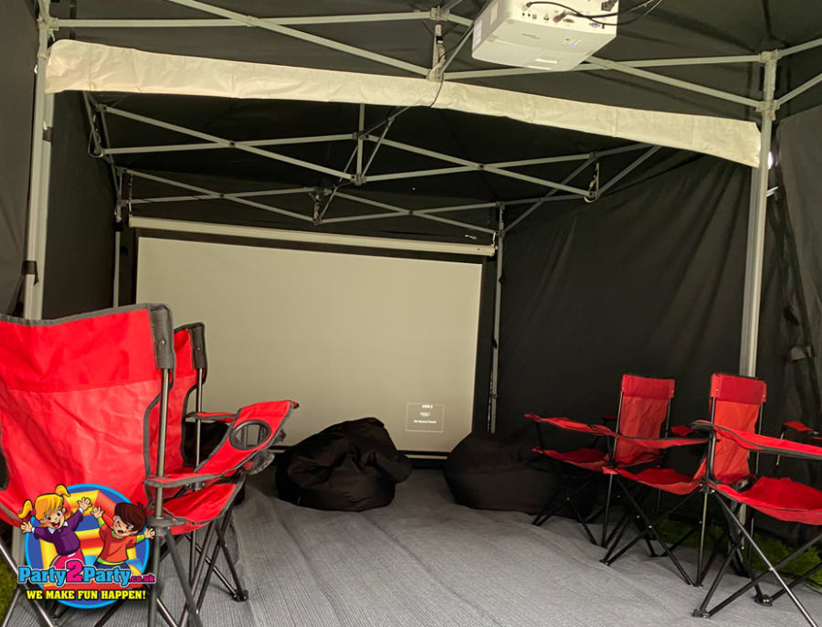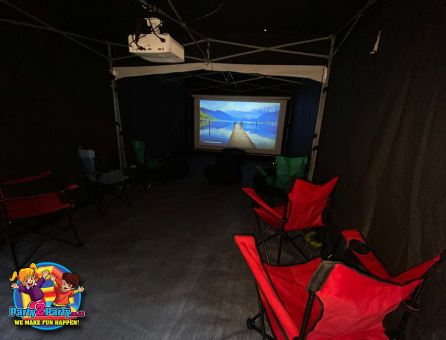 - With our fully enclosed blacked out 3 x 6 meter gazebo you can start watching movies as soon as it is setup.