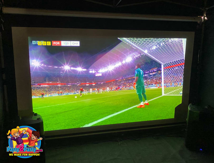 We offer one of the BEST setups around with an amazing 4K high definition projector, a 2.8 meter wide screen and a fully enclosed black 6x3meter water proof gazebo with a 1200watts sound system to match.