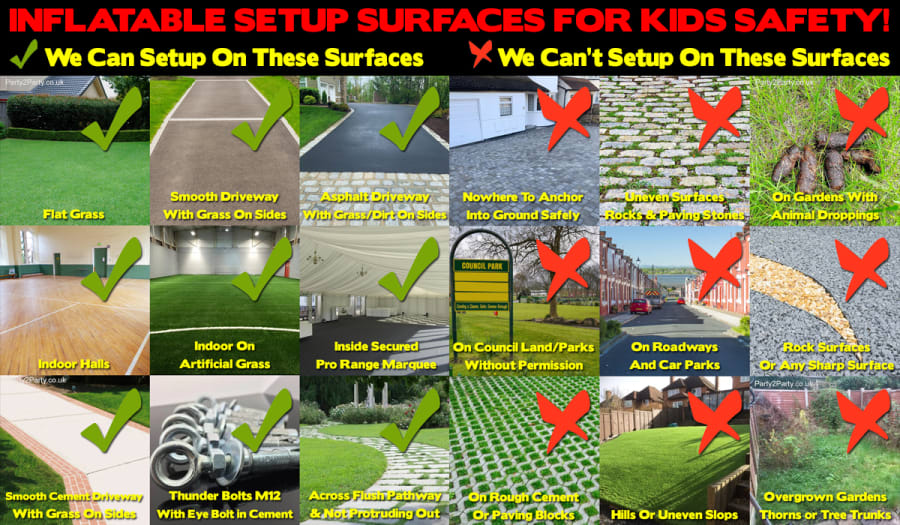 It is your responsibility when booking our inflatable equipment to make sure it will fit in your hired hall.