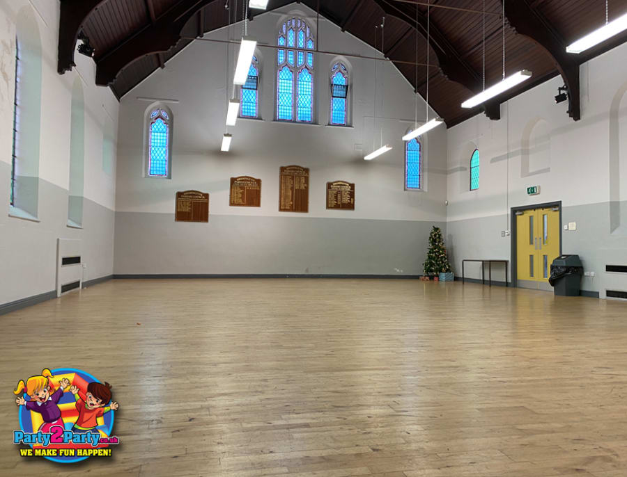Facilities: Has a generous large high ceiling hall with good facilities and access. Comes with a detached kitchen with everything needed to prepare party food and good WC facilities. Tables and chairs supplied with room. Access via ramp on side of building or through main front doors. Street parking.